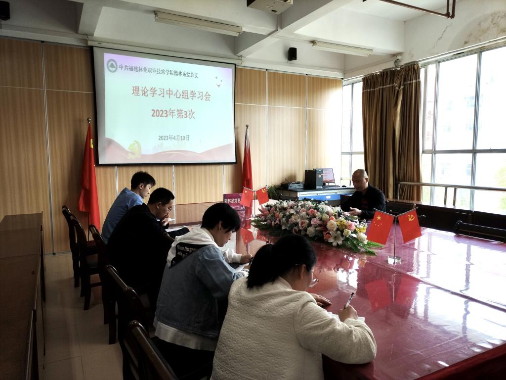 2023年4月10日上午,园林系党总支召开2023年第3次理论学习中心组学习会,此次学习会由园林系党总支理论学习中心组成员参加,学生党支部书记列席,系党总支书记陈剑勇领学。