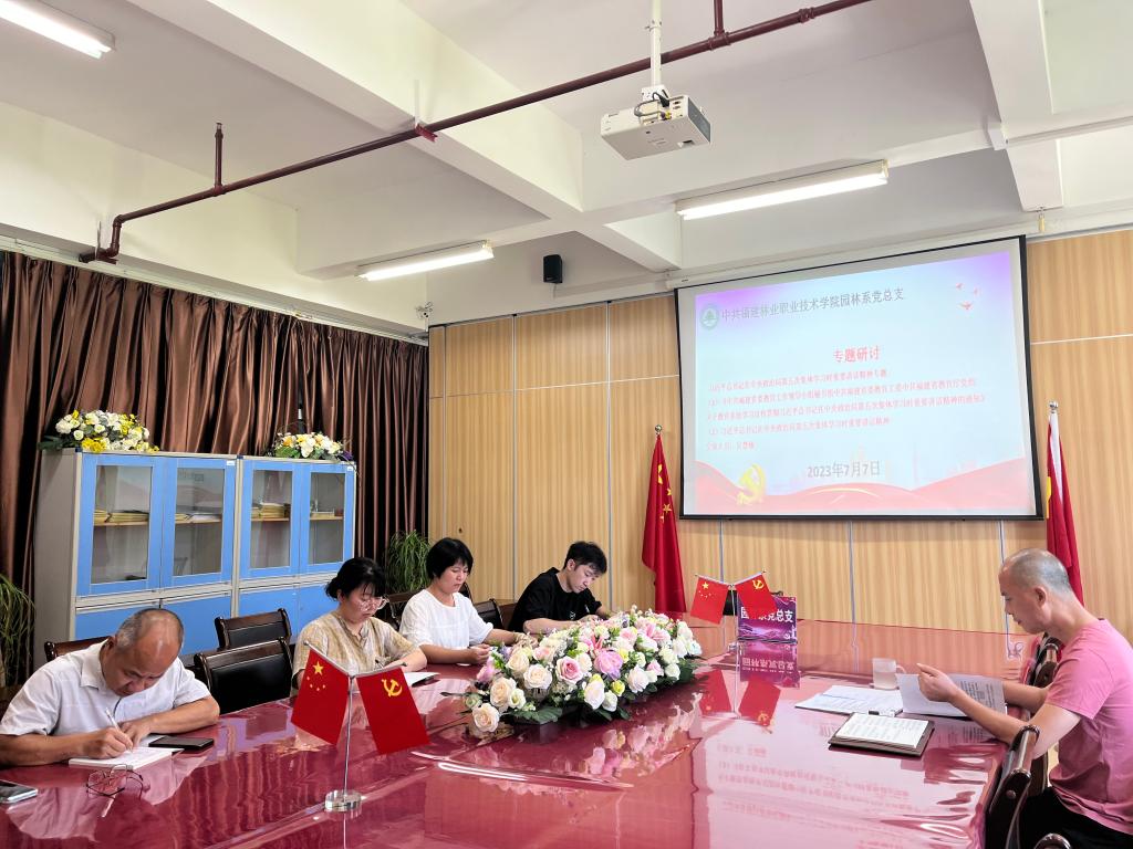2023年7月14日上午,园林系党总支召开2023年第7次理论学习中心组学习会,此次学习会由园林系党总支理论学习中心组成员参加,学生党支部书记列席,系党总支书记陈剑勇领学。