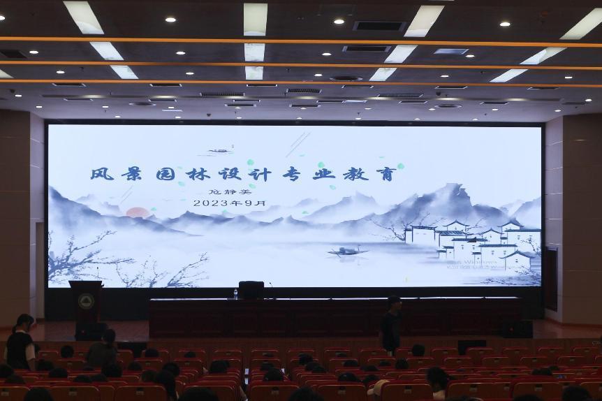 为进一步增进同学们对自己所学专业的认识与了解,激发大家对专业的学习兴趣,2023年9月24日19:00,园林系于江南校区学术报告厅开展风景园林设计 “校情校史及专业介绍、实验室安全教育”专题讲座。本次讲座由危静美老师主讲,2023级风景园林设计全体新生参加。