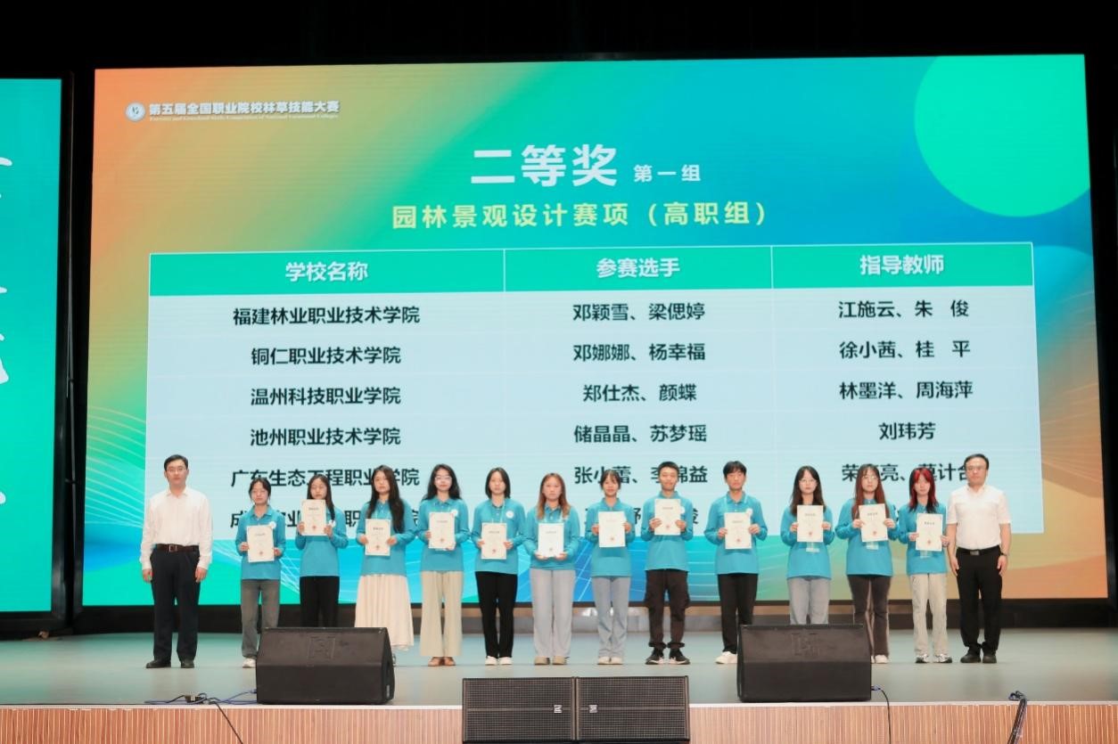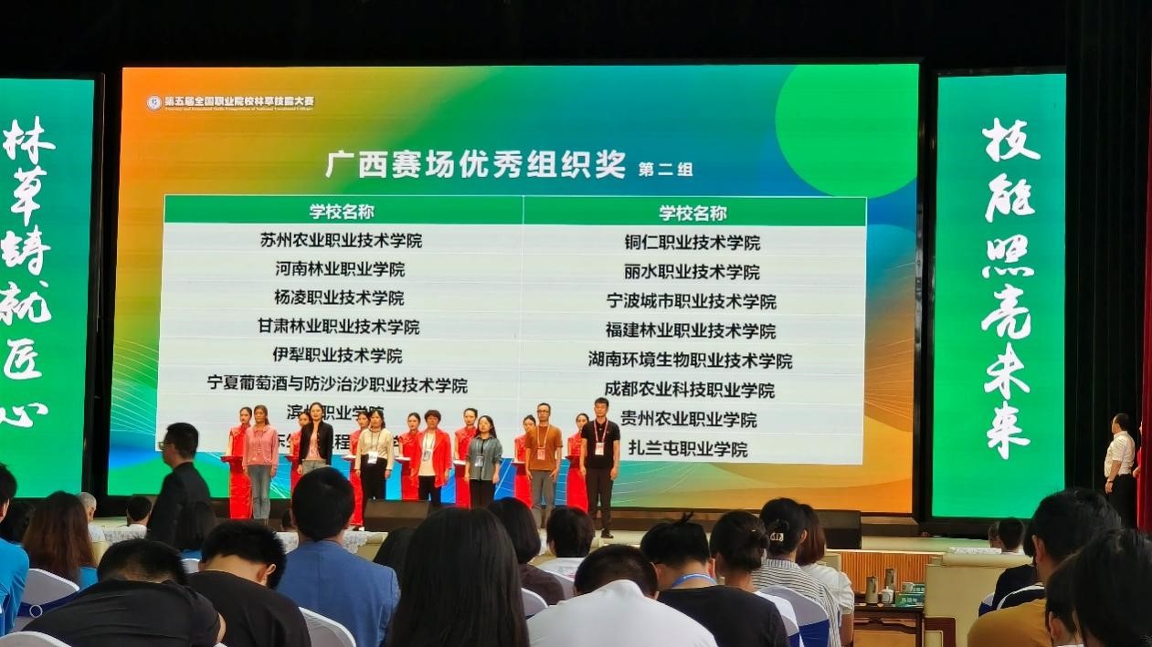 10月25日—10月27日,第五届全国职业院校林草技能大赛园林景观设计(高职组)赛项在广西生态工程职业技术学院隆重举行,园林景观设计(高职组)赛项共有56支参赛队伍同场竞技。在我院园林系江施云、朱俊老师组成的赛项指导团队以及园林系各位督导老师的悉心指导下,风景园林设计(五)1901班邓颖雪、风景园林设计2205班梁偲婷两位同学组成的代表队,经过团结协作、全力奋战,最终荣获二等奖,为学校获得“优秀组织奖”,实现我院在该赛项上新的突破。