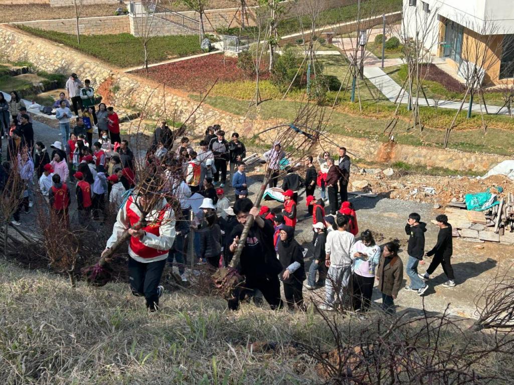 春风送暖万物苏,植树添绿正当时。为深入贯彻落实习近平生态文明思想,倡导绿色环保理念,2024年3月12日下午,学院组织全体教师党员开展“共建美丽校园,优化育人环境”植树节活动,园林系党总支积极响应学院号召,组织教工党支部、学生党支部全体教师党员及小红花志愿服务队赴学院新建环校路斜坡区域开展义务植树活动。