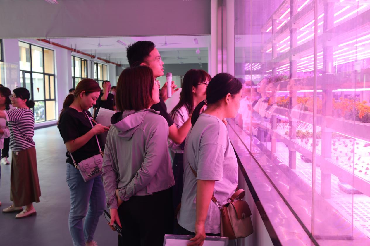在福建省生态景观教育科普基地参观学习环节,园林系主任黄华明、系党总支副书记黄淑燕带领辅导员们一起参观了基地内的各类园林景观及建筑小品,即新中式园林、传统中式园林、台地园林、日式园林、欧式园林、东南亚风情园等,让辅导员们从中领略了不同植物与不同建筑小品间完美融合的景致给大家带来的不同观感。同时,戴曲顺老师为大家讲解了科普基地内的十万洁净植物工厂、无土栽培实训场、智能温室大棚内不同的植物品种及其生长发育形式,让大家了解了不同的植物品种对生长环境的不同需求。