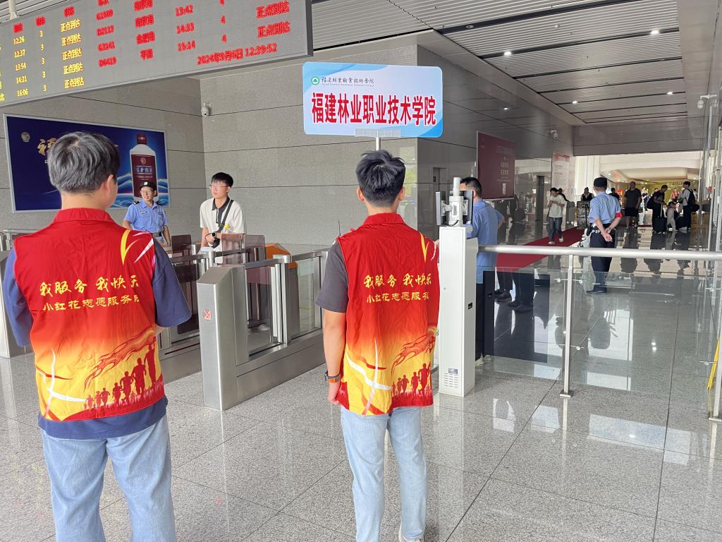 与此同时,在延平西站,车站接站组的党员教师郑建忠老师早已等候多时。他手持迎新标识,面带微笑,在人群中穿梭,为远道而来的新生及家长提供热情周到的接站服务。郑老师不仅帮助新生搬运行李,还耐心引导他们乘坐校车前往学校,让每一位新生在踏入校园之前,就能感受到来自园林系大家庭的温暖与关怀。
