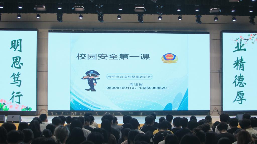 为增强新生法治观念和安全意识,进一步推动新生心理健康教育工作的深入开展。2024年9月25日晚,于江南校区体育馆开展“大学生心理健康教育、安全教育(法制与网络)、禁毒教育”专题讲座。由园林系学生科科长兼团总支书记吴锦鸿主持,特邀心理咨询中心黄韵绣老师和南平市公安局夏道派出所周述彬警官参加此次宣讲。园林系2024级各班辅导员、助导及全体新生参与。