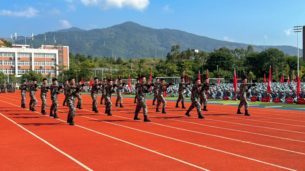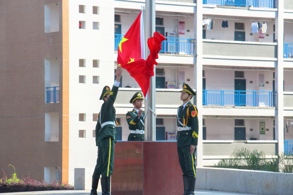 清晨的阳光洒在江南校区的田径场上,微风轻拂,彩旗飘扬。学院领导、军训教官团队以及园林系的师生们齐聚一堂,共同见证这一庄严的时刻。在激昂的国歌声中,全体人员肃立,向国旗致以最崇高的敬意,爱国情怀在每个人心中激荡。