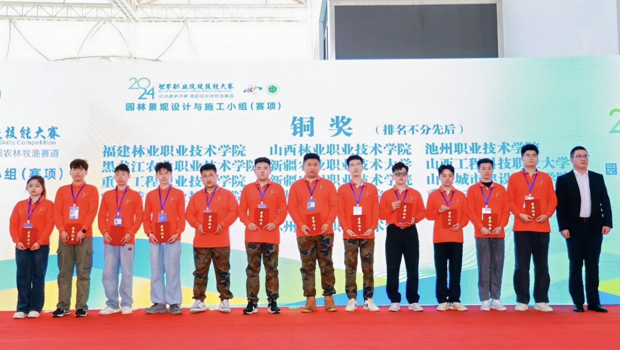 2024年10月28日—29日,2024年世界职业院校技能大赛总决赛争夺赛(高职组)农林牧渔赛道园林景观设计与施工小组(赛项)在上海农林职业技术学院实训基地举行。由园林系党总支书记、主任黄华明带队,在唐必成、郑建忠两位老师指导下,园林技术2101黄捷涵、园林技术2202许滢圳、杨鹏宇、林清锋四位参赛选手,与来自全国30个省、自治区、直辖市的58家职业院校、232名选手同台竞技,获得了大赛铜奖的好成绩。