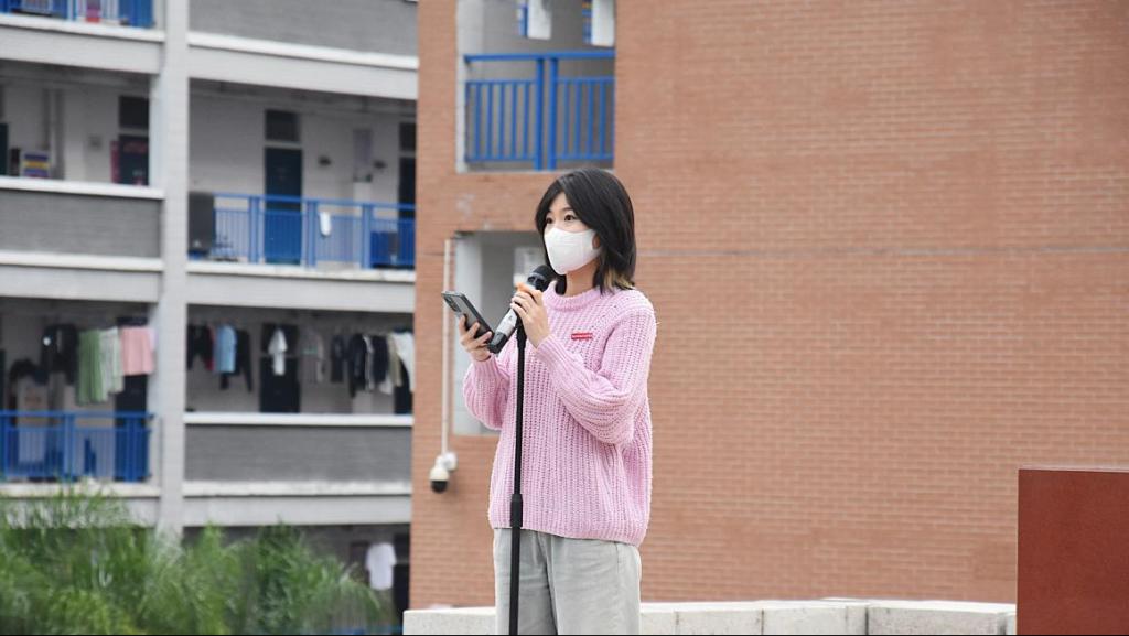 随后,周婧丹老师进行了国旗下讲话。她别具匠心,以一首“天道酬勤”为首的藏头诗巧妙地描述寒风的到来,字里行间满是对同学们的关切与深情叮嘱。还向同学们介绍了降温后可能会遇到的各种疾病,嘱咐同学们防患于未然。并希望同学们能够安然无恙地度过这温度急剧变化的天气,在寒冷中坚守健康。