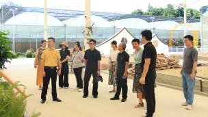 调研座谈会结束后,一行人跟随黄华明主任的步伐,移步至园林系生态景观科普基地。从中式园林景观到智能化大棚,由花卉生产基地到东南亚风情园林和现代化无土栽培实训基地,不同的园林风格,展现了多元化的美学体验,更体现园林系对于园林艺术的多样化发展,全方位提升。