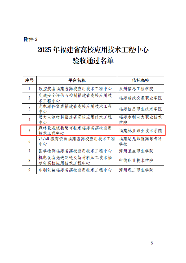 2025年7月17日,福建省教育厅发布《闽教便函〔2025〕971号》文件,正式公布2025年福建省高校科技创新平台验收结果。由篮球欧洲杯下注_欧洲杯投注网站下载-官网承建的“森林景观植物繁育技术福建省高校应用技术工程中心”顺利通过专家组评估验收,成功获批为省级高校应用技术工程中心。