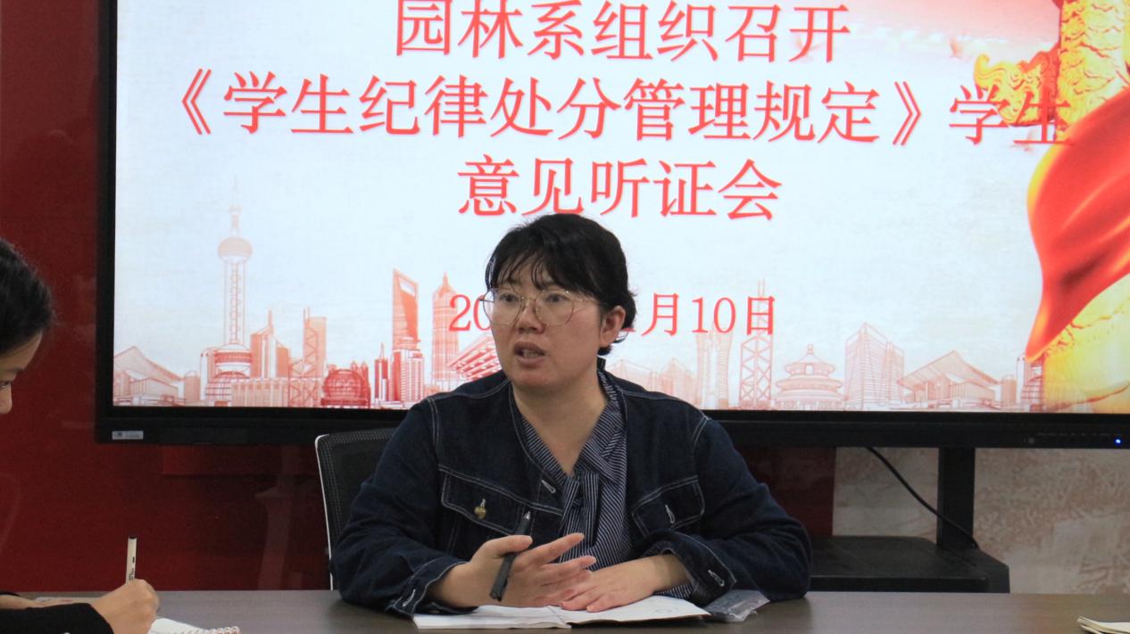为广泛吸纳师生意见建议,推进学生管理工作科学化、民主化与规范化建设,2025年11月10日,园林系分别在“一站式”学生社区与园林楼408会议室组织师生召开《学生纪律处分管理规定》意见听证会。园林系学生科科长兼团总支书记吴锦鸿主持,全体专职辅导员及各年级学生代表参会,现场讨论氛围热烈,意见交流深入充分。