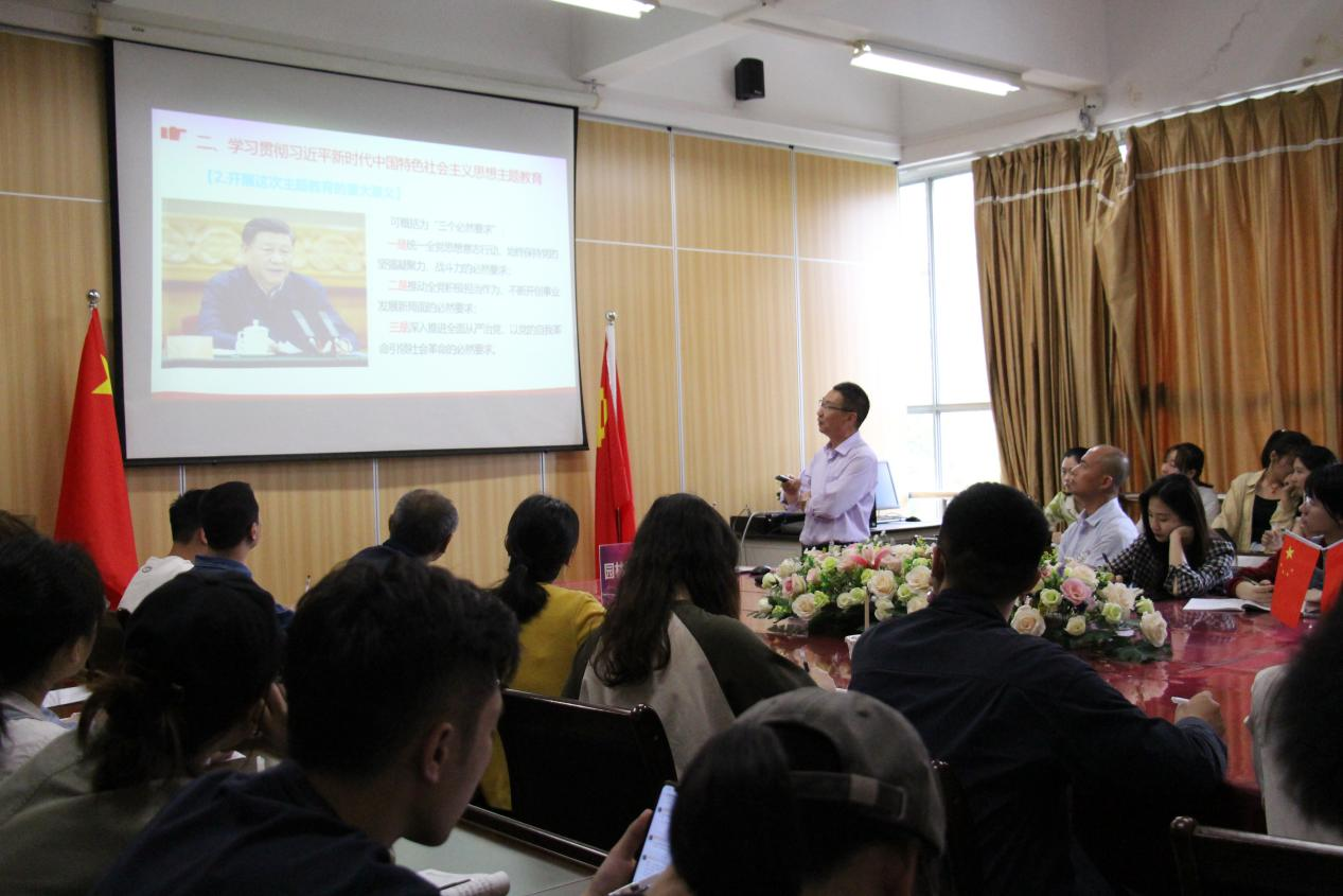 课上,李副院长首先传达了习近平总书记在主题教育工作会议上的重要讲话精神和学院党委的工作部署,要求广大党员要深刻认识开展主题教育的重大意义,接着重点围绕“党的十八大以来,党中央先后组织开展五次集中性学习教育回顾”、“学习贯彻习近平新时代中国特色社会主义思想主题教育”和“如何开展好学习贯彻习近平新时代中国特色社会主义思想主题教育”这三个方面内容为师生党员进行了全面深入的阐释。