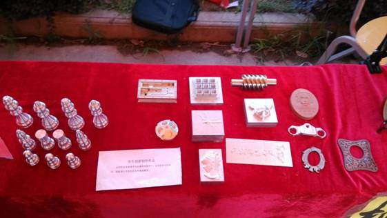 在展览中,电子作品展区的:智能车、消防车、模拟交通灯、篮球计分器、光立方等作品;机械作品展区的:龙凤呈祥、校徽、国际象棋、竹报平安等作品;木材加工作品:“如鱼得水圆通茶盘”、佛、观音立体雕像、“天林书苑”小木屋等作品引来了特别多的围观师生,指导老师跟制作者们耐心的跟前来参观的师生讲解着每一个作品的设计制作原理、工艺等步骤,让前来参观的师生全面了解我系各专业学习内容。