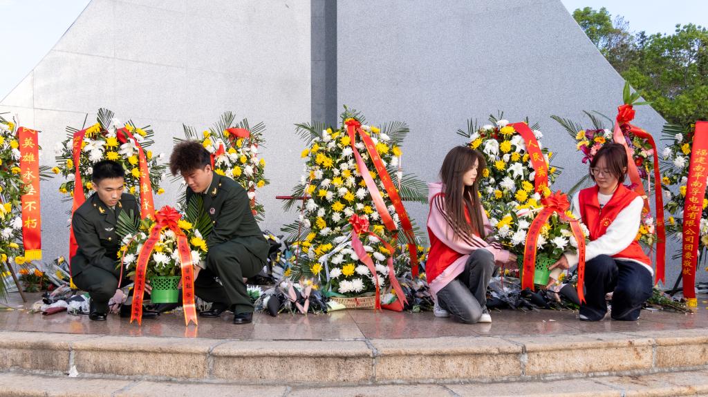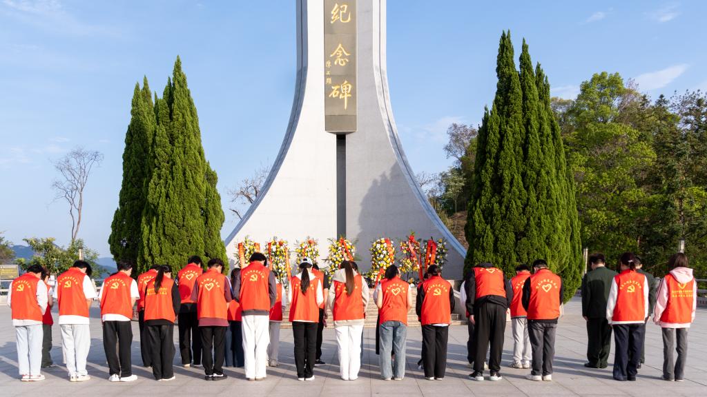 活动伊始,师生们身着整齐服装,沿着九峰山石阶拾级而上,用脚步丈量革命先辈的奋斗历程。在庄严肃穆的革命烈士纪念碑前,退伍士兵代表和学生党员缓缓抬起花篮,将寄托哀思的花篮敬献在纪念碑基座上。