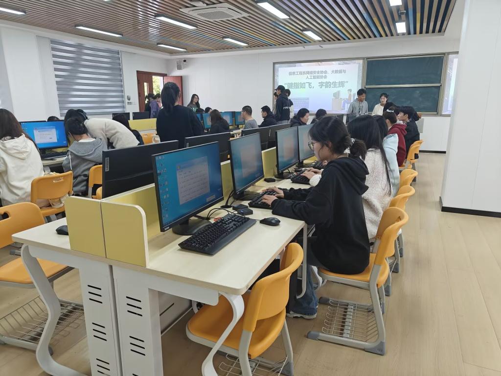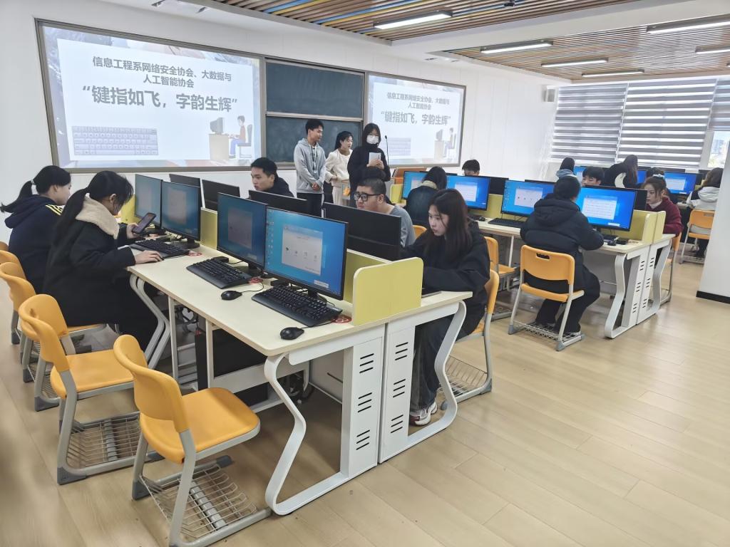 在数字化浪潮席卷而来的今天,信息交互的节奏愈发快速。快速且精准的打字能力,已成为学生与职场人士高效学习、工作的必备技能。为提升学生们打字水平,激发学生对计算机操作的热情,4 月 1 日,信息工程系网络安全协会、大数据与人工智能协会在信工楼 204 教室联合举办 "键指如飞,字韵生辉" 打字比赛。本次活动以经典古文《桃花源记》为竞赛文本,吸引了50名协会成员参与,通过竞技形式提升学生数字化时代核心技能。