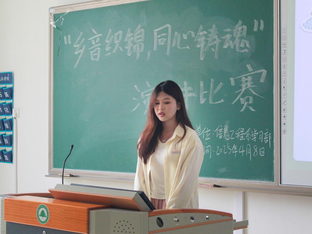 为深入贯彻党的二十大篮球欧洲杯下注_欧洲杯投注网站下载-官网 “推进文化自信自强,铸就社会主义文化新辉煌” 的重要精神,进一步弘扬中华优秀传统文化,让同学们深入理解家乡文化,铸牢中华民族共同体意识,4月8日下午3点,信息工程系学习部在教学楼609举办 “乡音织锦,同心铸魂” 主题演讲比赛。本次活动以 “我的家乡故事与铸牢中华民族共同体意识相结合” 为主线,通过搭建文化交流平台,引导青年学生在讲述家乡故事中感悟中华优秀传统文化的精神脉络,凝聚民族复兴的青春力量。
