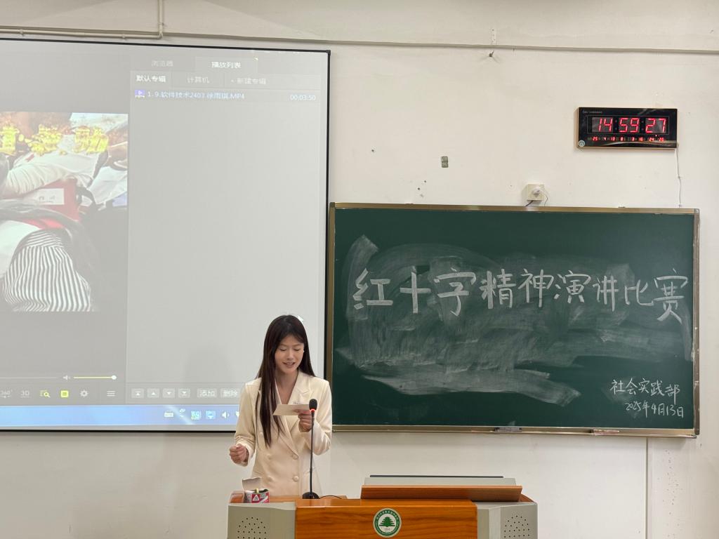 为弘扬 “人道、博爱、奉献” 的红十字精神,推动 “三救三献”、禁毒防艾、生命教育等理念在青年学生中的传播,4 月 13 日下午 14 时,信息工程系社会实践部在教学楼举办 “人道博爱为笔,绘就奉献长卷” 主题演讲比赛。活动聚焦红十字先进人物事迹与两岸交流合作视域下的红十字运动,吸引了各班级学生踊跃参与。
