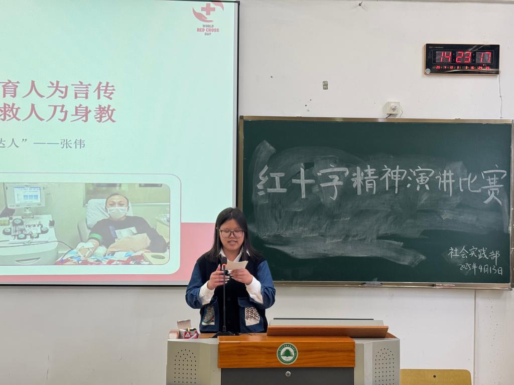 比赛现场气氛热烈,来自不同班级的同学们紧扣主题,将个人经历和时代主题紧密结合,通过鲜活案例诠释红十字精神的现实内涵。选手们以真挚的情感、朴素的语言诉说着博爱的故事,有的分享了在抗击自然灾害中,志愿者们不顾个人安危,冲在前线救援的感人事迹;有的讲述了医护人员在面对疫情时,日夜坚守,为生命护航的奉献精神;还有的讲述了普通人在日常生活中,通过点滴善举传递温暖和希望的故事。每一个故事都深深打动了在场的观众,掌声此起彼伏,展现出红十字精神的强大感召力。
