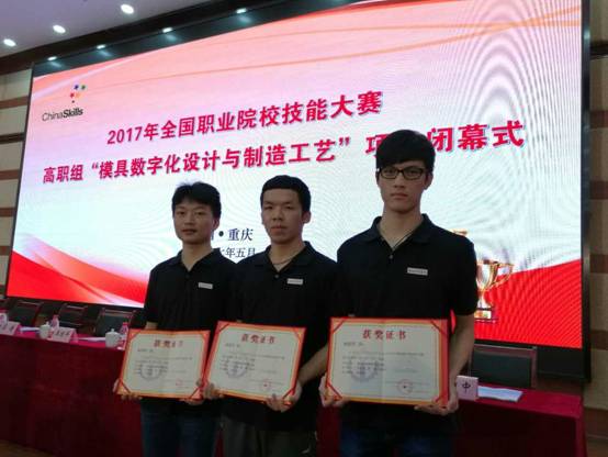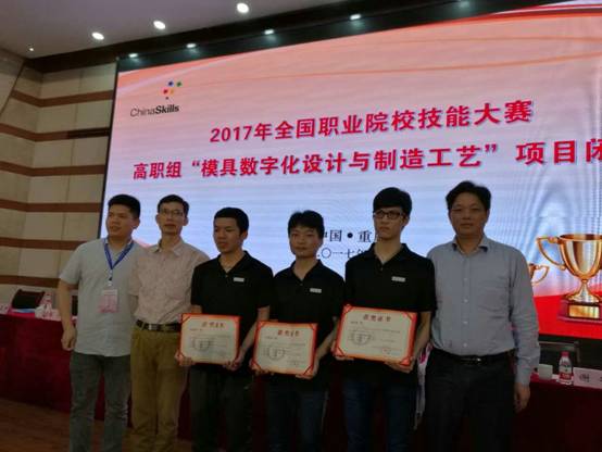 5月19日-21日,2017年全国职业院校技能大赛高职组“模具数字化设计与制造工艺”项目在重庆工业职业技术学院举行。由我系张碧清老师率领的选手们历经3天时间的奋力比拼,经过激烈的角逐,不负众望,脱颖而出,在此项目中荣膺二等奖。在此,我们向参加比赛的选手和指导教师表示热烈祝贺!