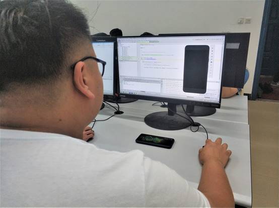 5月28日下午2点30分,“移动互联网应用软件开发”项目小组正于实训三404实训室进行紧锣密鼓的赛前培训,该赛项由自动化工程系华建祥老师指导。