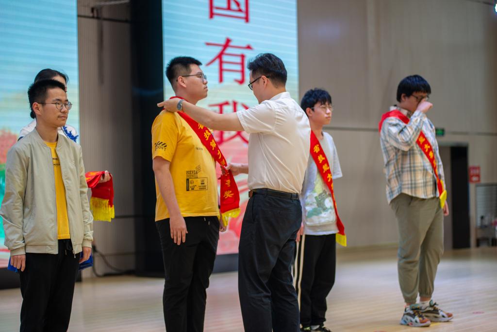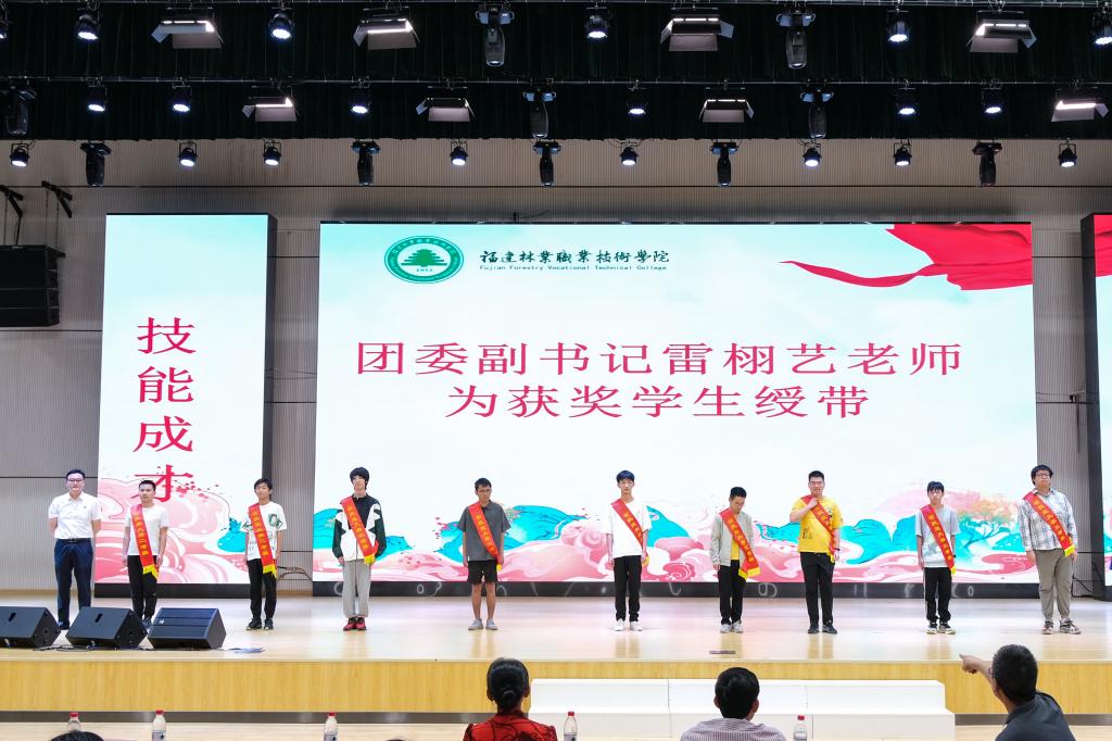 随后,院学生部部长蔡敏老师、院团委副书记雷栩艺老师分别为获得2023年省技能大赛获奖教师和学生绶带。