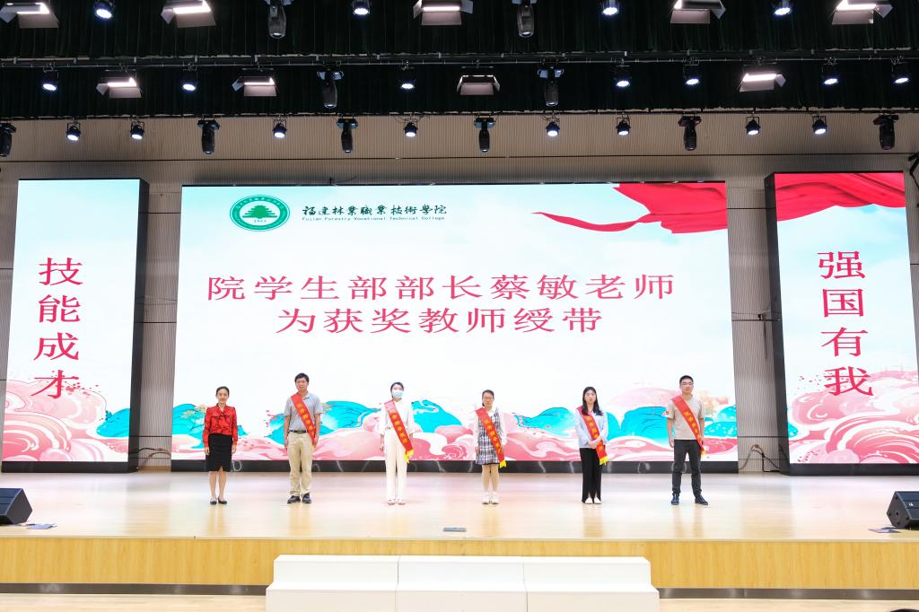 院学生部部长蔡敏老师为获得2023年省技能大赛获奖教师绶带