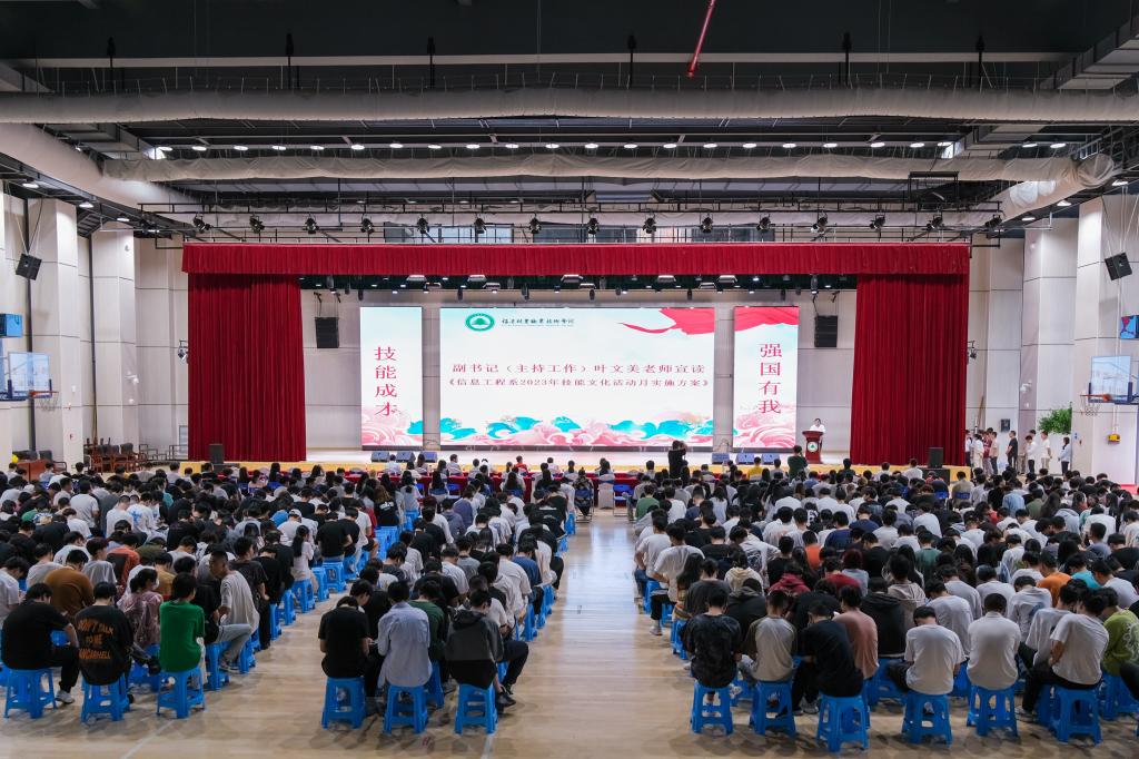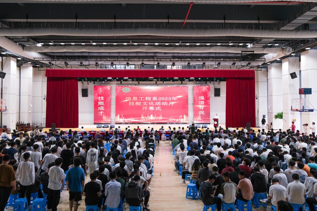为了深入学习贯彻党的二十大精神,落实立德树人根本任务,进一步打造以“工匠精神”为核心的校园技能文化品牌,彰显职业教育魅力,展示学生扎实娴熟专业技能及良好的素质,夯实技能基础,提升专业素养,锻造工匠品质。根据《篮球欧洲杯下注_欧洲杯投注网站下载-官网篮球欧洲杯下注_欧洲杯投注网站下载-官网印发2023年度“技能文化活动月”实施方案的通知》,2023年5月23日下午,信息工程系2023年技能文化活动月开幕式在江南体育馆隆重举行。副院长谢金生、院学生部部长蔡敏、院团委副书记雷栩艺、系主任华建祥、党总支副书记(主持工作)叶文美、专职组织员谢婉欣、学生科科长兼团总支书记吴文杰、教学科科长蔡尊煌、学工组全体专职辅导员、各赛项指导教师以及系参赛参会学生共计700余人参加开幕式。开幕式由系学生科科长兼团总支书记吴文杰主持。
