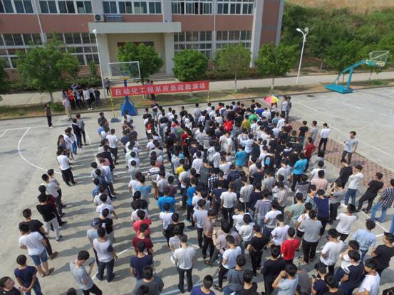随着一声哨令响起,总指挥发出疏散信号后各楼层安排吹哨员吹响哨声。演习过程中,老师同学听到信号后及时逃生,逃跑疏散过程中保持冷静,用毛巾、袖头等捂住口鼻降低身体高度,按规定线路疏散,在规定的时间范围内到达了篮球场。