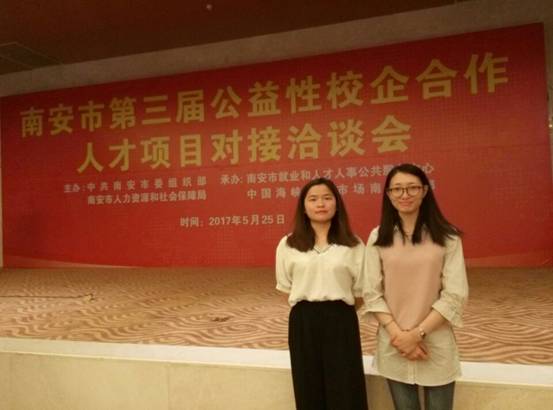 2017年5月25日,应中共南安市委组织部、南安市人力资源和社会保障局邀请,我系教师叶文美、谢婉欣赴南安参加南安市第三届大型公益性校企合作人才项目对接洽谈会。此次洽谈会凭借 “人才共育、资源共享、优势互补、协同发展”新模式,旨在推动南安市企业与职业技术院校交流合作。
