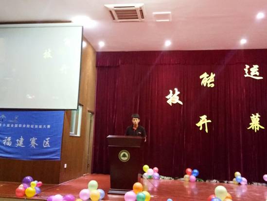 开幕式第三项,由运动员代表张成杰同学讲话。他表示会带着老师和同学们的鼓励和期望,在本次技能运动会中取得好成绩,更会以这次比赛为契机,进一步巩固提高知识水平和操作技能,切实掌握过硬本领,将来用实际行动和工作业绩来回报老师,回报学校,回报社会。