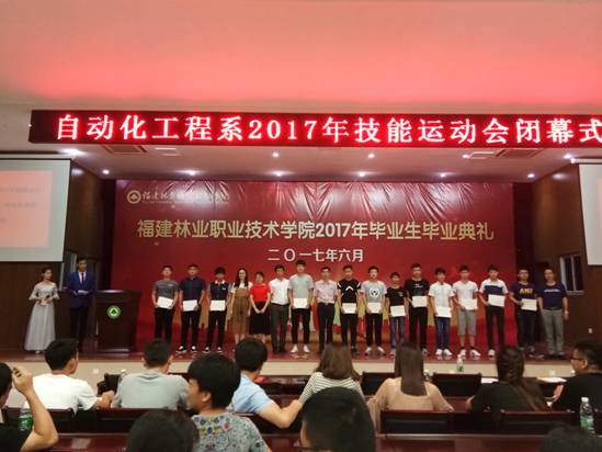 自动化工程系团总支副书记吴慧娜代表系部学弟学妹们给毕业生们送上毕业祝福。系部领导老师们为优秀毕业生和本次技能运动会获奖代表颁奖。