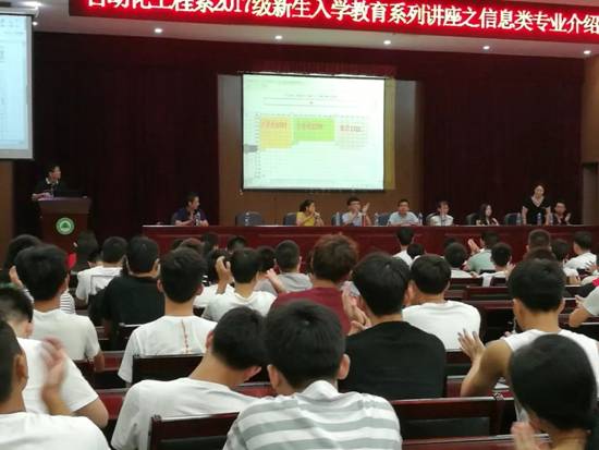 为使我系2017级新生尽快了解专业的就业方向,明确大学奋斗目标,更好进行大学学习的规划,我系9月8号在(江南校区)召开信息类专业介绍及专业老师见面会,进行专业学习方向的指导。见面会由我系蔡尊煌老师主持,各信息类专业老师出席。