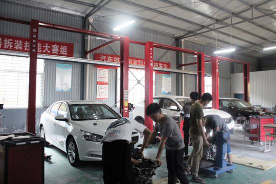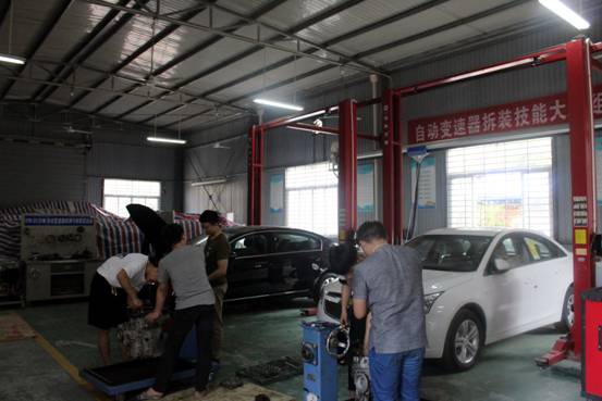 我系技能活动月中的“汽车检测与维修”项目小组在李瑞老师的带领下,在汽修实训室里进行紧锣密鼓的技能训练。