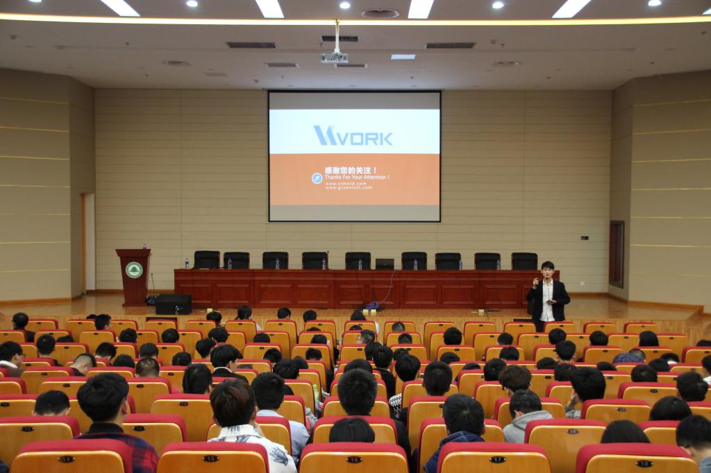 宣讲会伊始,现场气氛良好,秩序井然。三家公司依次上台播放公司的宣传视频作为开场,三位招聘负责人通过ppt演讲,向毕业生介绍了公司概况、发展历程、晋升通道、配套福利等情况,让毕业生们对三家公司有了更全面的了解,使他们在投递简历时多了一份理性,少了一份盲目。其中福耀玻璃招聘代表曾美金以最近超高人气的选秀综艺节目《偶像练习生》和《创造101》为例子,表明好的平台至关重要,品牌力量牵动世界。奥弗微科信息科技有限公司陈代表说,公司加班是常态,所以要求员工能吃苦,并在后期还会安排考核。最后出场的厦门建霖工业有限公司始创于1976年台湾,董事长吕理镇的理念是公司想要发展就要多走多跑,所以给公司取了一个英文名字“RUNNER”。三位公司负责人精彩宣讲迎来全场掌声雷动。