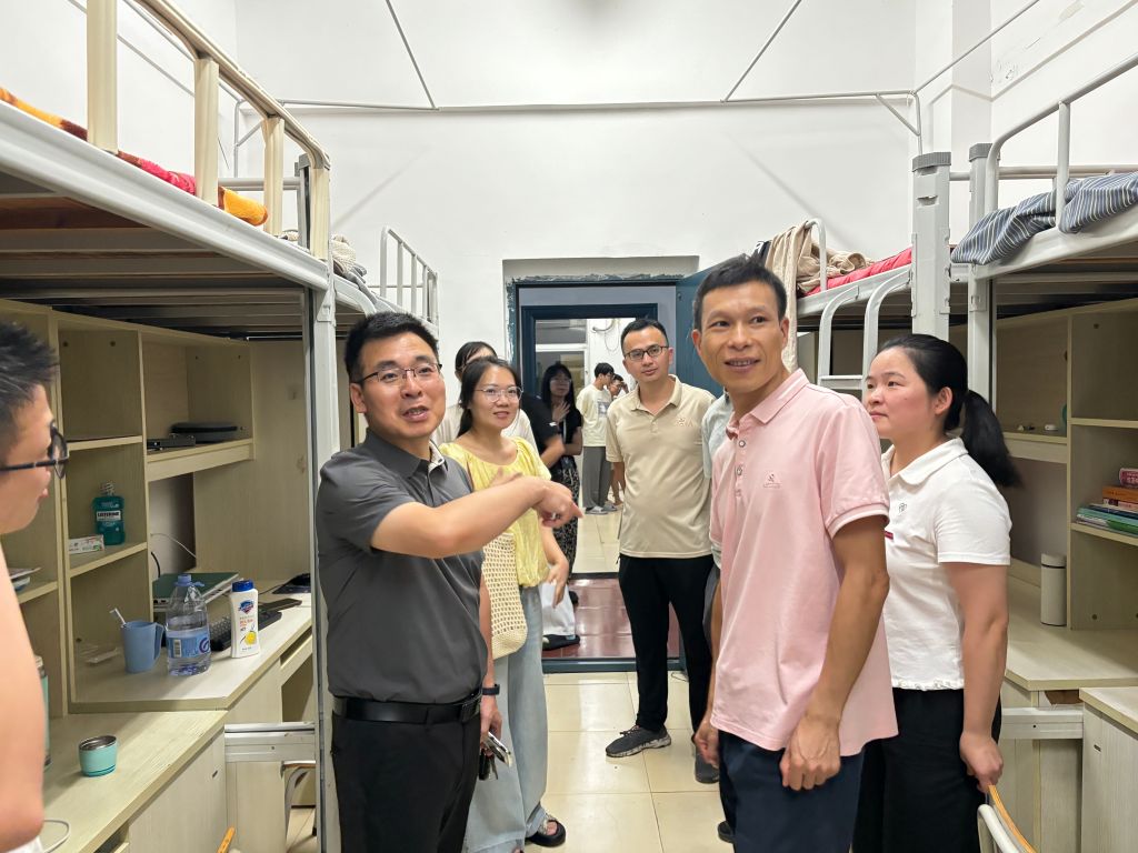 为深入了解返校学生的开学适应情况,帮助学生快速调整状态投入新学期生活,2025年8月30日晚,学院纪委书记詹其仙在信息工程系党政领导班子、辅导员的陪同下,深入信息工程系学生宿舍走访慰问返校学生,重点走访2022级五年专新生宿舍。