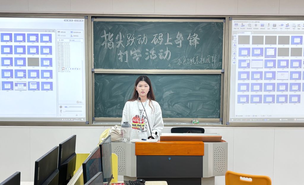 在数字化时代背景下,键盘操作效率已成为学习与工作的重要基础技能。为帮助同学们夯实计算机操作功底,激发对数字技能的浓厚兴趣,2025年11月11日,信息工程系社团部、计算机协会联合大数据与人工智能协会,在信工楼204机房举办“指尖跃动,码上争锋”打字比赛。本次比赛以爱国诗歌《祖国啊,我亲爱的祖国》为指定文本,50名学生同台竞技,在指尖敲击间锤炼技能、感悟红色文化。