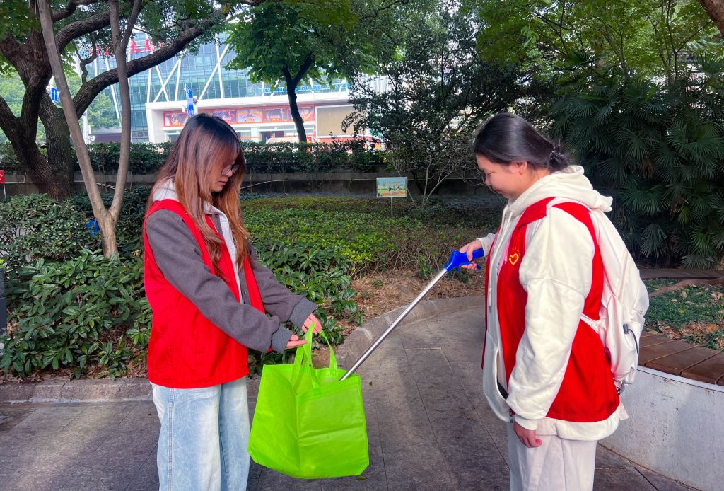 清晨8:30,活动正式启动。现场负责人先进行简短动员,明确“全域清理、不留死角”的目标,随后按区域分工:一组负责公园草坪与花丛,二组聚焦闽江边走道,三组专攻石板缝、灌木丛等隐蔽角落。志愿者们迅速化身“环保卫士”,领取工具后各司其职、协同作战,一场以 “守护绿色”为名的行动有序展开。
