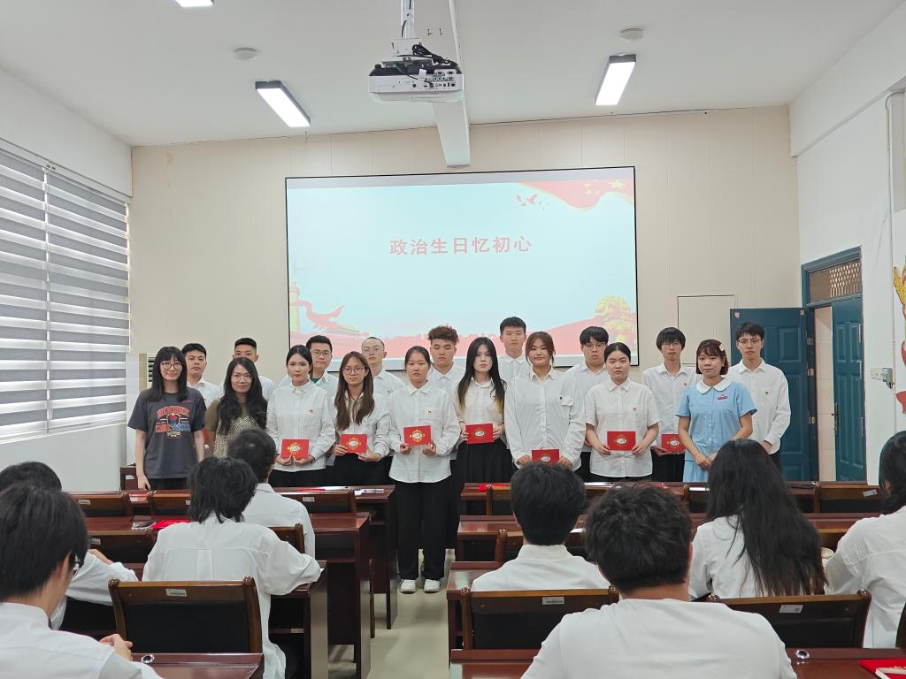 为强化党员身份意识,信息工程系学生第一、第二党支部为55期毕业生党员发放专属政治生日贺卡。贺卡内页印有入党誓词、组织寄语及党员成长纪实,扉页上镌刻着“初心如磐,使命在肩”的红色印章。“这张贺卡既是纪念,更是提醒,让我们时刻牢记第一身份是共产党员。”毕业生党员吴铭义说道。