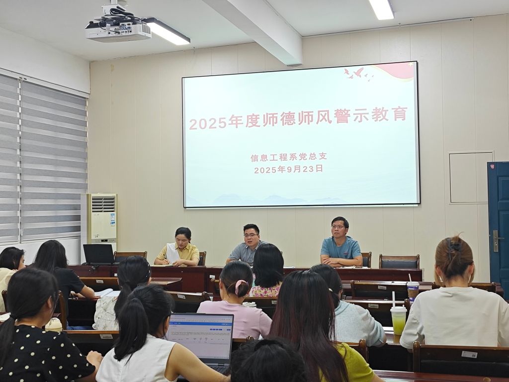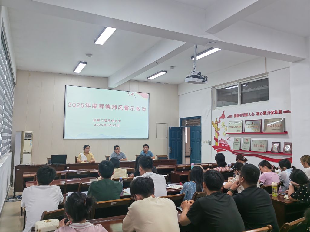 为深入贯彻落实立德树人根本任务,持续强化教师队伍纪律意识与底线思维,营造清正廉洁的育人生态,9月23日下午,信息工程系党总支于信工楼408会议室召开2025年度师德师风警示教育专题会议。系部全体教职工参会,会议由系党总支书记、主任华建祥主持。